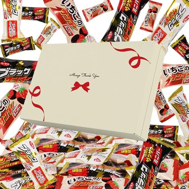 ブラックサンダー/キットカット ミニ ギフト ボックス ※商品が被った場合、他の類似商品に変更させて頂く場合もございます。内容の細かな指定は出来ませんので予めご了承下さい。 ※備考欄に下記を明記して下さい。 キャストに「差し入れ札」としてお届けさせて頂きます。なお、SNSなどに掲載される場合もございますので予めご了承下さい。 お客様のお名前(ニックネームやハンドルネーム可) お届けするキャスト名(複数も可) メッセージ(30文字程度)